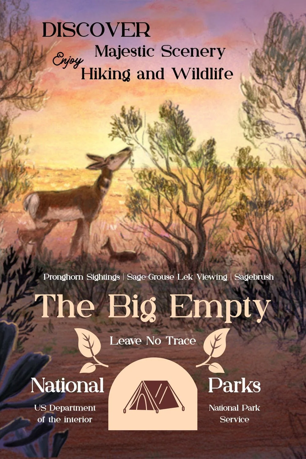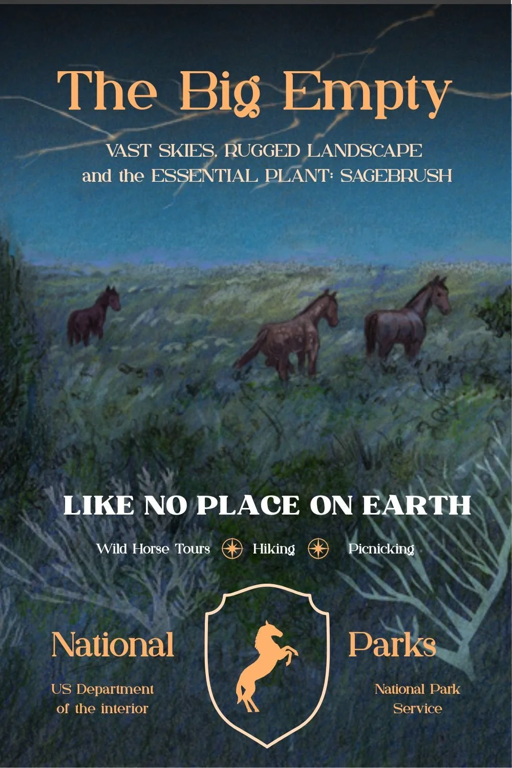 This “sagebrush survival story” takes place in the deserts of the Western U.S., which includes National Parks such as Joshua Tree National Park and Death Valley National Park, but this “Adopt a National Park” poster project can extend to National Parks across the country. Other National Parks, such as Yellowstone National Park, are home to similar plant communities. This encourages students to discover the “essential plant” or key species in their adopted park.